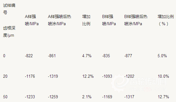 表4 輸入軸齒部噴涂前后殘余應(yīng)力值