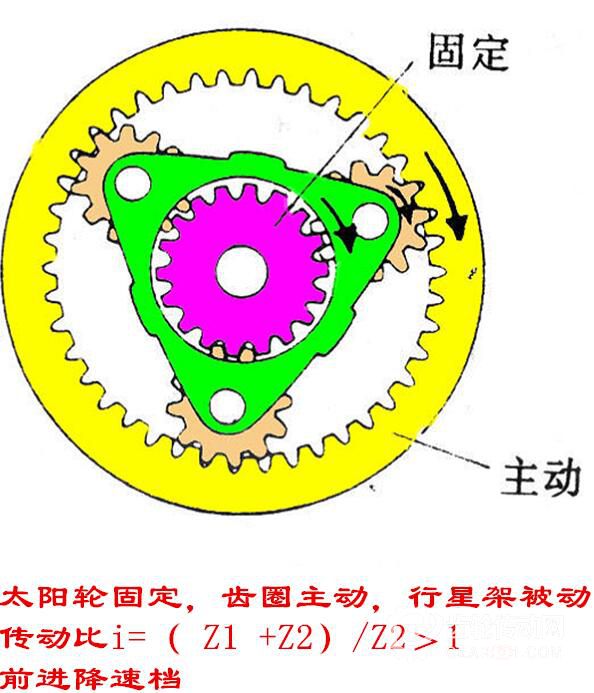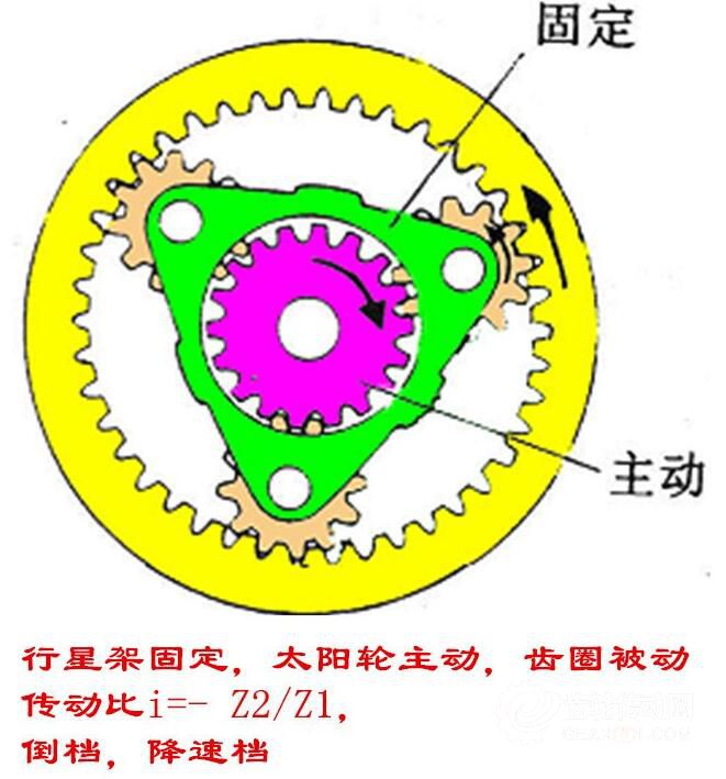 5、行星架固定,太陽輪主動,齒圈被動
