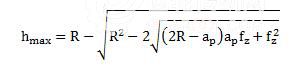 刀具圓弧底刃的半徑與其最大切削厚度的關(guān)系式為: