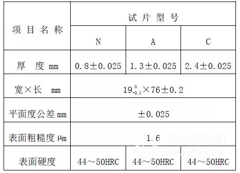 ②采用弧高度試片測定受噴齒輪的強度,其試片規格與技術要求詳見表1。