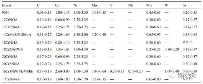 表 1 常用航空第一代滲碳齒輪鋼牌號及合金成分(質量分數/%)