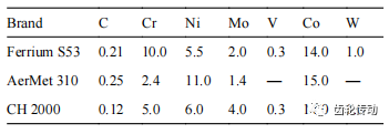 表 5 航空用超高強度鋼 Ferrium S53、AerMet310 及 CH 2000 冶金成分對比(質量分數/%)