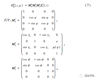 滾刀系列切削刃在工件坐標 O5 -X5Y5Z5 中形成空間軌跡曲面族,包絡出齒輪齒面。各切削刃空間軌跡曲面的齊次坐標為: