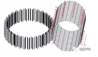 基于微分幾何原理,過齒面某點的齒向向量和齒形向量的叉乘,可求得該點處齒面法向量: