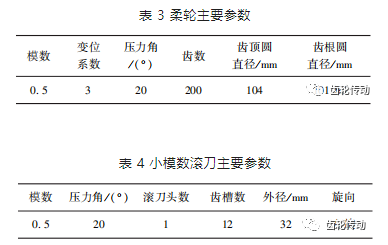 以常見的漸開線齒廓諧波齒輪柔輪為例進行滾齒誤差仿真計算,大變位柔輪及滾刀的主要幾何參數分別如表 3 和表 4 所示,滾刀為標準長度,取有效切削刀刃為 73 個。滾齒仿真過程中,滾刀軸向進給量 f 取值為 1. 5 mm / r。
