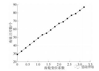圖 9 滾刀有效刀刃數與齒輪變位系數關系