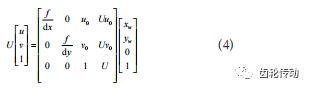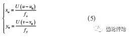 式(5)中,fx為U軸方向歸一化焦距,fx=f/dx;fy為V 軸方向歸一化焦距,fy=f/dy。