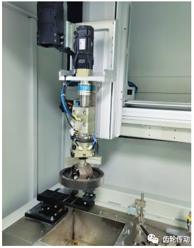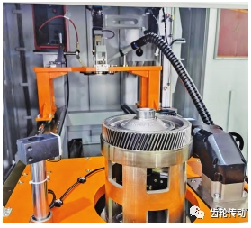 機器人將壓裝好的部件取出并傳遞到焊接設備(圖 3),通過專用的工裝軸向定位夾緊后,采用高能量填絲焊技術將差速器殼體和主減齒輪焊接成為整體。整個焊接過程非常快捷,激光器發射激光,先將鎳基焊絲融化,然后焊絲作為焊接中介將差速器和主減齒輪融合成一個整體。
