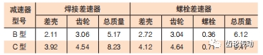差速器和主減齒輪通過焊接方式連接取代了傳統的螺栓連接方式,不僅節省了大量的螺栓,而且差速器殼體和主減齒輪結構設計更加簡約,質量明顯改善。根據株洲齒輪開發 3000 N · m 的 B 型減速器和 5000 N · m 的 C 型減速器的焊接差速器和螺栓差速器對比,發現 3000 N · m 的 B 型減速器焊接差速器總質量較螺栓差速器總質量減少了 0.95 kg,減重約 15.5%;5000 N · m 的 C 型減速器焊接差速器總質量較螺栓差速器總質量減少了 1.24 kg,減重約 13.1%。由此可見焊接差速器在輕量化方面具有明顯優勢,見表 1。