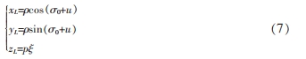將 ρ0 與 x2 軸的夾角為 σ0 時作為刮齒起始點,u 為刮齒邊緣參數,且 σ0+u=σ+θL-θL0+ξ,對式(6)進行簡化描述: