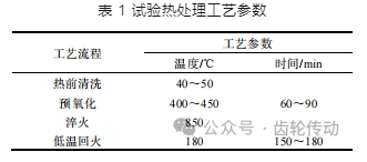 3)裝爐完成后,將已測(cè)量樣件按預(yù)氧化、清洗、滲碳淬火、低溫回火、清洗等工序進(jìn)行熱處理。滲碳淬火工藝為氣體滲碳,采用愛(ài)協(xié)林箱式多用爐,具體工藝為升溫到 920 ℃,均溫 90 min,然后升高碳勢(shì)至 1%進(jìn)行 300 min 強(qiáng)滲碳,再降低碳勢(shì)至 0.8%進(jìn)行 150 min 擴(kuò)散,隨后爐冷卻至 850 ℃,保溫一定時(shí)間后進(jìn)行淬火。其余相關(guān)工藝參數(shù)如表 1 所示。