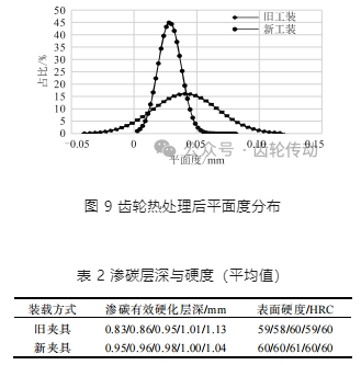 4)熱處理完成后檢測(cè)熱后精度、齒形、平面度、齒輪滲碳層深和硬度。熱后精度及齒形檢測(cè)位置同熱前保持一致。