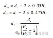 式中:Hr 為滾柱牙高;ds 為絲杠軸的公稱直徑;Ps 為絲杠軸的導(dǎo)程;Pr 為滾柱的導(dǎo)程;dr 為滾柱的公稱直徑。