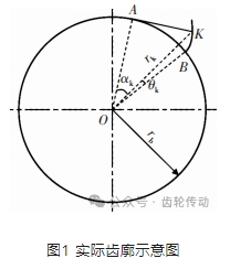 壓力角αk =arccos(rb/rk )、展角θk=tan αk-αk,K點向徑與X軸正方向的夾角φk為