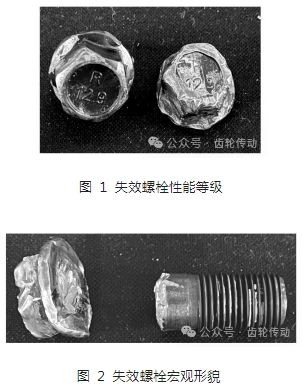 某批次汽車差速器用高強度螺栓材料牌號為 SCM435,制造工序為:下料→鍛造六角頭→滾壓螺紋→熱處理→表面發黑→除氫。成品性能等級要求為 12.9 級,如圖 1 所示,硬度要求為 39~44 HRC(385~435 HV)。裝配后短期內發生多起斷裂失效,部分安裝完畢后自行斷裂脫落,部分排查擰緊時斷裂脫落。斷裂位置均發生在螺栓六角頭根部 R 角處,失效件宏觀形貌如圖 2 所示。