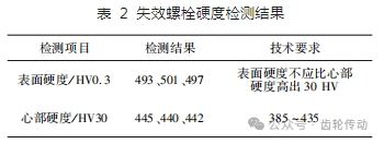 失效螺栓硬度檢驗結果如表 2 所示,表面硬度和心部硬度均不符合 GB / T 3098.1—2010《緊固件機械性能螺栓、螺釘和螺柱》中對12.9 級螺栓的要求,其中表面硬度過高與增碳有關。