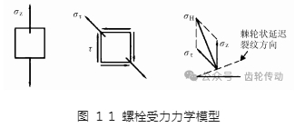 宏觀棘輪狀多源性斷口是螺栓表面增碳和裝配軸向拉應力及扭轉載荷共同作用的結果,其力學模型如圖 11 所示,另外也表明了螺栓對延遲開裂有較高的敏感性。