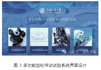 以齒輪傳動設計為主線,輔以齒輪應用、加工制造、互換性與測量技術等功能單元,將齒輪傳動試驗系統中涉及的功能模塊進行邏輯串聯,使整個系統在內容設計上具有一定的廣度和深度,達到高階性、創新性與挑戰度的系統開發目標要求。多功能齒輪傳動試驗系統界面如圖 3 所示。