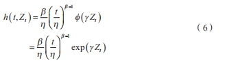 協變量函數通常采用指數函數形式。因此,威布爾比例風險模型如公式(6)所示。