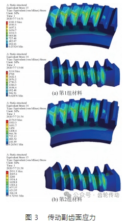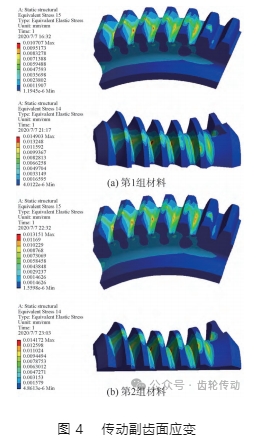 材料對傳動副齒面應變的影響