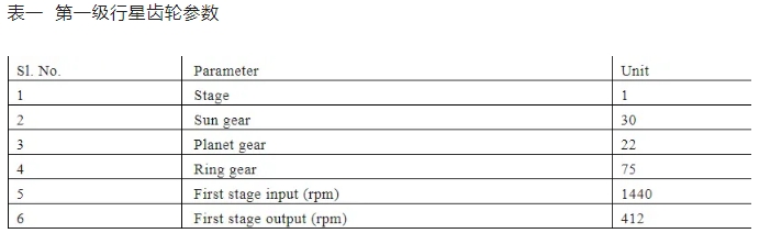 對一級行星齒輪的失效進行了詳細的分析。分析了可能出現的故障原因。行星齒輪傳動是由三個行星齒輪組成的齒輪系統,圍繞一個太陽齒輪旋轉。通常,行星齒輪安裝在行星架上,行星架本身可相對于太陽齒輪旋轉。所有齒輪的軸線通常是平行的,如圖所示。1.用于制造齒輪的材料取決于強度和使用條件,如磨損、音等。鋼是用于高強度齒輪,它可以是普通碳素鋼或合金鋼。鋼齒輪通常進行熱處理,以使韌性和齒的硬度得到適當的結合。一般來說,用于齒輪應用的鋼必須滿足易于制造和加工的兩個基本要求。制造和加工要求包括機械加工性、鍛造性和熱處理性[1]。通常情況下,齒輪是用來降低速度,從而增加扭矩。在大多數情況下,所需的減速比、傳動功率和小齒輪速度可以從產品設計規范中識別。行星輪、太陽輪和齒圈的參數見表一。輸入轉速與輸出轉速之比取決于每個齒輪的齒數,以及哪個部件保持靜止。動力傳輸輸入是22KW在1440rpm和最終輸出功率將是18rpm。對于這種巨大的減少使用三級行星齒輪箱。齒輪減速可采用(1+R/S)的速比來實現。這種傳動裝置偶爾用于拖拉機、鑄造部門和建筑設備,以提供高扭矩來驅動車輪。在這種情況下,第一級行星齒輪損壞。