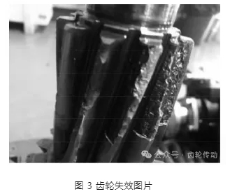 失效形式為齒面早期點蝕引起齒面剝落。觀察失效齒輪,有明顯的偏載現象,如圖 3 所示。