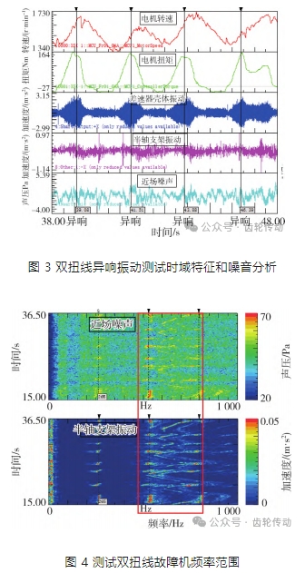 把客退有 “嗚嗚”異響的電驅(qū)動總成,按照整車異響工況上臺架進(jìn)行復(fù)測,發(fā)現(xiàn)近場噪音和差速器附件殼體振動明顯異常,進(jìn)一步鎖定異響來源為差速器總成內(nèi)部零件,故障復(fù)現(xiàn)測試結(jié)果如圖 8.