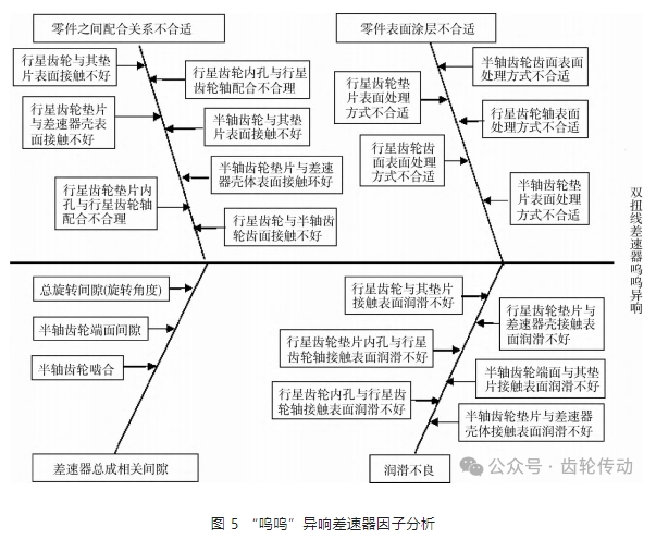通過對差速器嗚嗚異響故障產(chǎn)生的機理分析,識別出差速器異響因子,如圖 5.