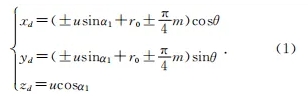 其中:u為刀具曲面上點沿圓錐面母線距參考點的距離;θ為刀架從齒坯中央截面至端面的轉角。