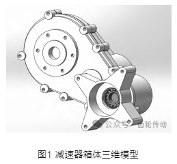 對于電動汽車的減速器箱體來說,其結構由兩個主要的部分組成:即箱體和箱蓋。首先,需要構建這兩個部件的外觀模型,從大到小依次處理。具體而言,可以使用拉伸和切除來創建這些部件的大致形狀,通過拔模、抽殼等方式,可以進一步完善內部空間的設計。接下來,運用異形孔向導工具,可以生成相應的螺紋孔。完成上述工作后,得到如圖 1 所示那樣的減速器箱體的三維模型。
