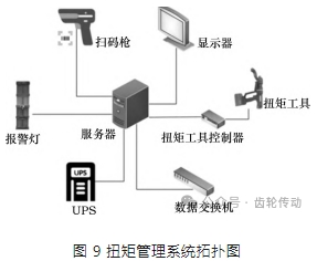 在傳統裝配模式下,對于主驅動部件上的螺栓、螺母等緊固件的扭矩質量控制,通常采用自檢與抽檢的人工檢驗手段來實現。在操作過程中,常出現扭矩遺漏、欠扭或過扭及擰緊錯序等問題,給主驅動的安全平穩運轉帶來隱患。為提高主驅動裝配過程中的扭矩管理水平,開發了一套具備信息記錄與檢測功能的扭矩管理系統,其拓撲圖如圖 9 所示。