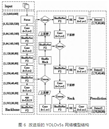 YOLOv5s 主干特征提取網絡采用 C3 網絡結構,帶來較大的參數量,識別速度較慢,應用受限。因此本文將主干特征提取網絡替換為更輕量的 ShuffleNetV2 網絡結構,以實現網絡模型的輕量化,提升識別速度和識別精度。