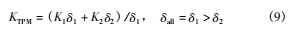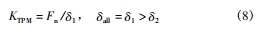 與此同時,齒對 1 沿嚙合線方向的變形量 δ1 即為整體嚙合變形量 δall,則 δall = δ1 > δ2,相應的修形齒輪嚙合剛度 KTPM為:
