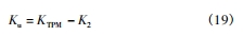 如圖 3b 所示,當齒對 1 以 a2 點即將進入接觸區域 A2 參與嚙合時,齒對 2 中主動輪待接觸區域存在修形齒廓,若齒對 1 沿嚙合線方向的變形量 δ1 大于齒對 2 中主動輪修形量 Δ1,則齒對 2 接觸參與嚙合,即為雙齒嚙合狀態,此時的修形齒輪嚙合剛度 KTPM可依據式 (17) 計算; 若齒對 1 沿嚙合線方向的變形量 δ1 小于齒對 2 中主動輪修形量 Δ1,則齒對 2 不參與嚙合,此時為單齒嚙合狀態(齒對 1 單獨承載) ,齒對 1 的嚙合剛度 K1 依據式(5) 進行計算。