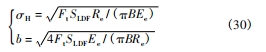 通過式(26) 確定的齒間載荷分配系數 SLDF,可計算出參與嚙合齒對的接觸力 Fi,根據式(29) 所得綜合曲率半徑 Re,基于赫茲彈性接觸理論,可推導出修形齒輪承載接觸時的齒面接觸應力 σH 與接觸半寬 b。