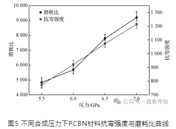 (1)在 7 GPa壓力下,合成的 PCBN樣品的抗彎強度和磨耗比最佳,分別為1 214.1 MPa和9 200。