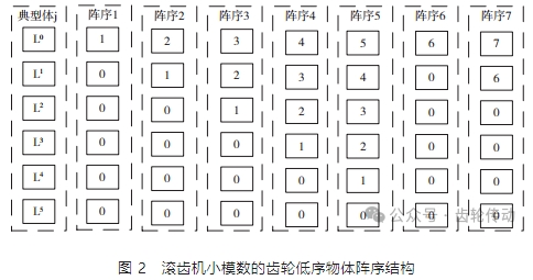 結合滾齒機的低序物體陣列原理,對機械的拓撲結構進行矩陣計算,得到該機械的小模數低序物體陣序,如圖 2 所示。