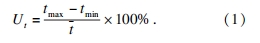 及最大溫度差 Δtmax外,引入相對溫度浮動率 Ut 作為另一判斷指標(biāo).Ut 的定義 如式(1)所示.路徑在齒寬中間部分的數(shù)據(jù)點(diǎn)選取數(shù)量,與兩側(cè)端部的數(shù)量相同.相對溫度浮動率 Ut 的數(shù)值越大,則表示齒輪兩端與中部的差距越大,溫度在齒寬方向上的溫度分布均勻性越差.