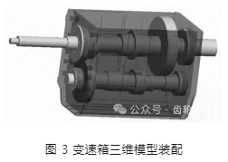 為了保證三維模型能夠有效的模擬出實際裝配過程中的誤差,對整體模型進行裝配:建立各個零部件模型,與箱體進行裝配;建立軸承模型,與箱體孔進行配合;建立軸模型,與軸承孔進行配合,其中軸承會隨著軸承孔位置的改變而改變,裝配模型如圖 3 所示。
