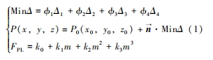 式中: Δ1 、Δ2 、Δ3 和 Δ4 分別為模具加工偏差、模具磨損偏差、模具受載變形偏差和齒輪回彈變形偏差; ?1、?2 、?3 和 ?4 分別為模具加工偏差、模具磨損偏差、模具受載變形和齒輪回彈變形的系數; P0 (x0 , y0 , z0 ) 為模具偏差修正前的齒面點坐標; P(x, y, z) 為模具偏差修正后的齒面點坐標; n 為齒面法向量; FPL 為模具預緊力; k0 為初始預緊力; k1 、k2 和 k3 為預緊力相關的系數; m 為鍛造次數。