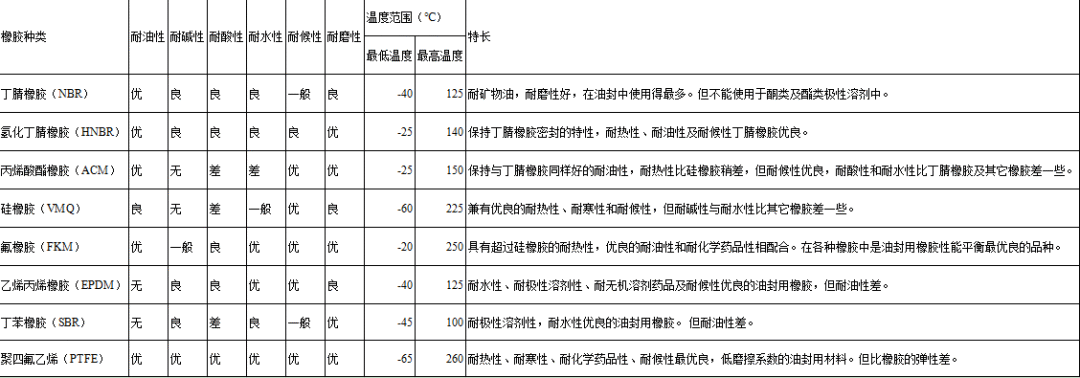 從表中可以看出高速軸密封件一般選用硅橡膠和氟橡膠,由于硅橡膠不耐油,機械強度低,價格昂貴,很少在密封件中使用。氟橡膠綜合性能優越,耐溫高可達300℃ ,耐酸堿,耐油性是耐油橡膠中最好的,可在200℃~250℃下長期工作,因此高速軸密封件選用氟橡膠較為合適。