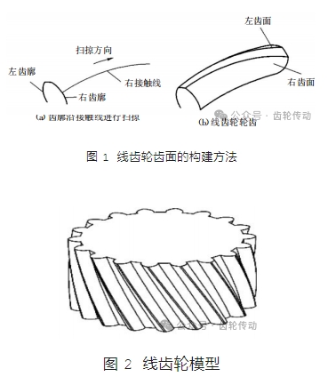 式中:σ 為線齒法向截圓參數(shù),r 為線齒半徑。如圖 1 所示,線齒輪齒面的構(gòu)建方法是法向齒廓沿著接觸線進(jìn)行掃掠得到整個(gè)齒面,將線齒輪輪齒進(jìn)行圓周陣列生成實(shí)體得到完整的線齒輪模型,如圖 2 所示。