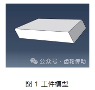 磨削溫度場由瞬態到穩態的時間極短,熱量來不及繼續傳遞就會被冷卻液帶走,沿磨削深度方向的傳播距離有限??紤]到齒輪尺寸遠大于磨粒的尺寸,可近似認為磨粒在磨削時作平面運動。設工件為長方體,尺寸 1.75mm×1.6mm×0.25mm,工件模型如圖 1 所示。
