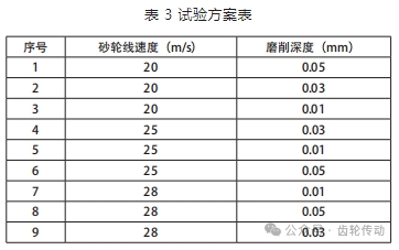 以砂輪線速度和磨削深度為變量,建立磨削加工試驗方案,如表 3 所示。