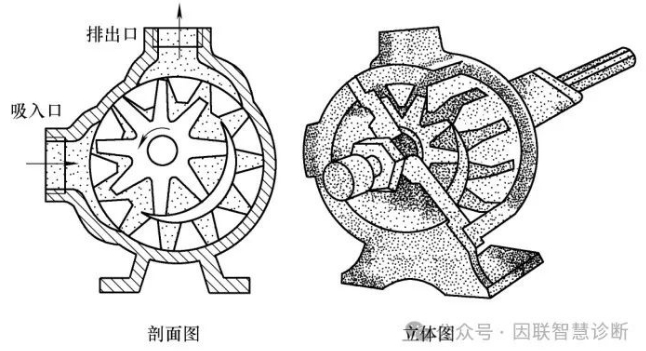 2)內齒輪泵。主動齒輪為內齒輪,從動齒輪為外齒輪,如圖2 所示。