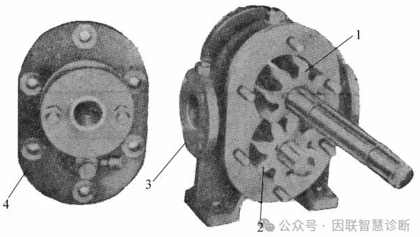 1一主動齒輪;2—從動齒輪;3—泵體;4—泵蓋