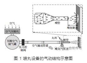 噴丸強化的基礎(chǔ)是具有足夠速度的彈丸,本文采用如圖 1 所示的氣動系統(tǒng)來形成高速的彈丸。