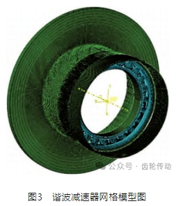 在諧波減速器的有限元仿真研究中,張寧等提出了一種輪齒齒廓線的修正方法,證明優化后的諧波減速器預計壽命提升超過20%。張超等對柔輪進行了疲勞分析,但是計算時把柔輪等效簡化成當量厚度的光滑殼體,準確性不足。楊宇通等使用響應面優化分析和中心復合設計方法發現較大的外圈溝曲率半徑可減小柔輪和軸承外圈的應力,提高柔輪使用壽命。Liu Chunjian 等分析了柔輪的應力分布及變形規律,Dong Huimin等研究了柔輪的變形特性。王亞珍等采用ANSYS Workbench分析了柔性薄壁軸承內外套圈在實際工作載荷及預變形作用下的變形、應力以及載荷分布規律。張林川等使用 ANSYS Workbench 建立了柔性軸承的參數化模型,對不同溝曲率半徑系數的柔性軸承進行靜力學接觸分析,得到了不同參數的柔性軸承的變形規律。相關研究有很多,但目前對諧波減速器柔輪的研究主要集中于杯形柔輪,缺乏對禮帽形柔輪的研究。本文設計了一種合理簡化的禮帽形諧波減速器模型,分析了不同載荷下柔輪與剛輪的嚙合特性,對柔輪進行了應力分布和變形規律分析,通過對柔性軸承的應力變形研究驗證了柔輪非線性變形的原因。本文分析結果為柔輪壽命研究提供了一定的理論依據。