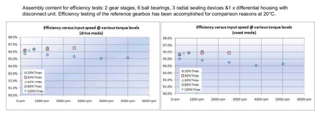 1、驅動工況和滑行工況下減速器效率測試結果
