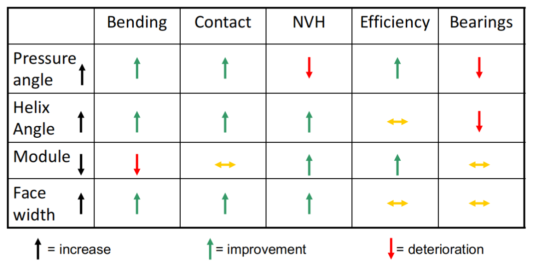 壓力角、螺旋角、模數和齒寬對齒輪強度、軸承壽命,NVH和效率的影響。